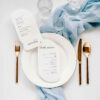 Rozsuwane menu leżące, będące równocześnie winietką z treścią drukowaną na fakturowanym papierze o gramaturze 250 g/m2.
