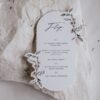 Minimalistyczne, dwustronne menu leżące będące równocześnie winietką z treścią drukowaną na fakturowanym papierze o gramaturze 250 g/m2 z motywem akwarelowych kwiatów vintage. Przeznaczone przykładowo do położenie na nakryciach gości.