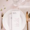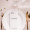 Minimalistyczne menu będące równocześnie winietką, jedno- lub dwustronne przeznaczone do położenie na nakryciach gości.