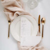 Rozsuwane, dwu- lub trzykartowe menu leżące, będące równocześnie winietką z treścią drukowaną na fakturowanym papierze o gramaturze 250 g/m2.