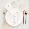 Przygotowywane ręcznie, będące zarówno winietką, dwu- lub trzykartkowe menu przeznaczone do położenia na nakryciach dla gości. Przygotowane na fakturowanym papierze o gramaturze 250 g/m2 i wykończone dartym brzegiem w kolorze złotym lub srebrnym