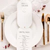Rozsuwane, dwu- lub trzykartowe menu leżące z treścią drukowaną na fakturowanym papierze o gramaturze 250 g/m2 o zaokrąglonym kształcie.