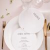 Minimalistyczne, okrągłe menu, przeznaczone przykładowo do położenie na nakryciach gości.