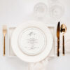 Okrągłe, dwustronne menu leżące z treścią drukowaną na fakturowanym papierze o gramaturze 250 g/m2.