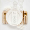 Minimalistyczne menu leżące. Druk na białym fakturowanym papierze o gramaturze 250 g/m2. Przeznaczone do położenie na nakryciach gości.
