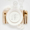 Minimalistyczne okrągłe menu leżące. Druk na białym fakturowanym papierze o gramaturze 250 g/m2. Przeznaczone do położenie na nakryciach gości.