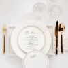 Okrągłe, dwu- lub trzykartowe menu leżące, będące równocześnie winietką z treścią drukowaną na fakturowanym papierze o gramaturze 250 g/m2.