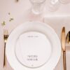 Minimalistyczne, okrągłe menu będące równocześnie winietą, przeznaczone przykładowo do położenie na nakryciach gości.