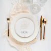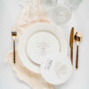 Menu leżące z treścią drukowaną na fakturowanym papierze o gramaturze 250 g/m2 z motywem kwiatu magnolii. Przeznaczone przykładowo do położenie na nakryciach gości.