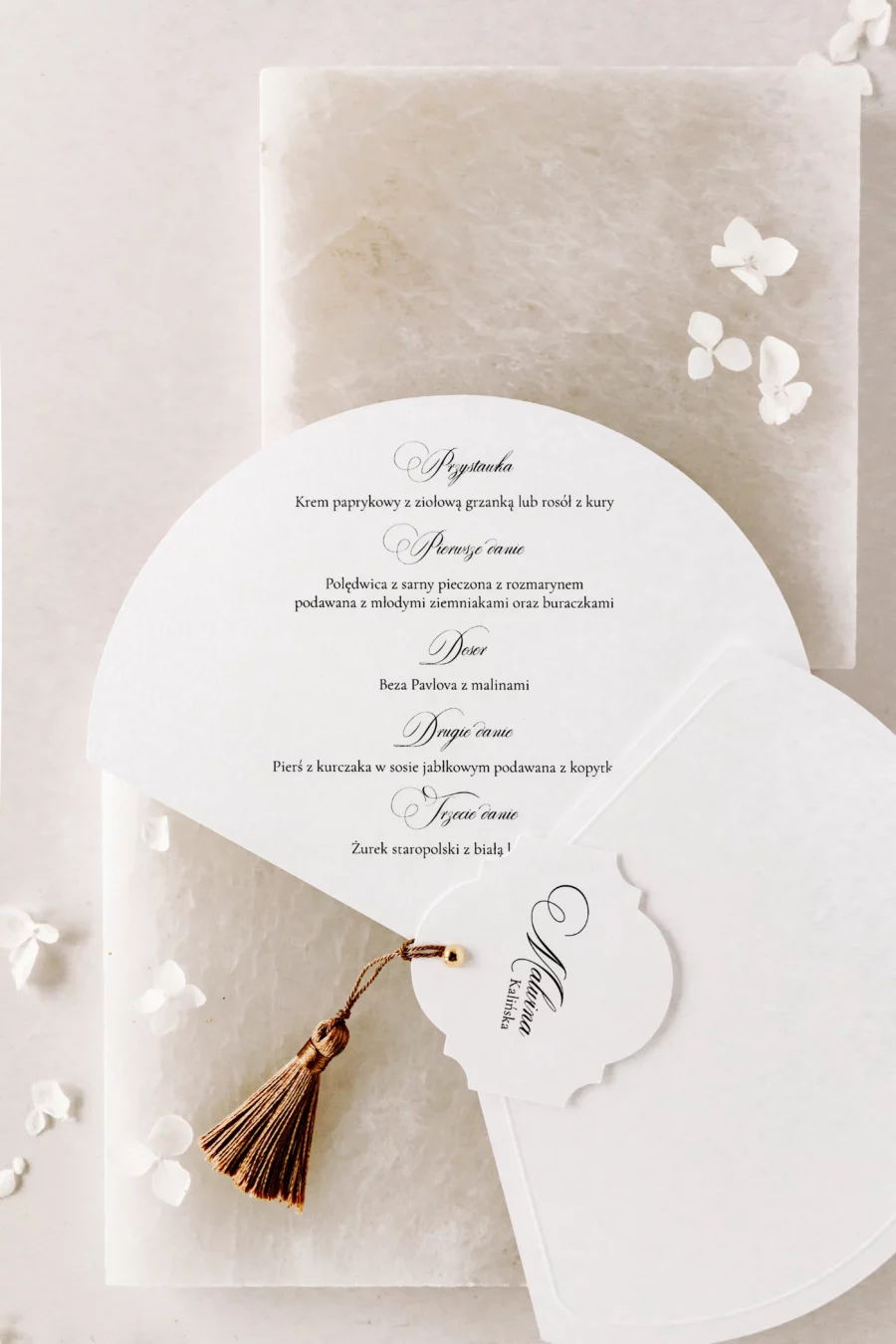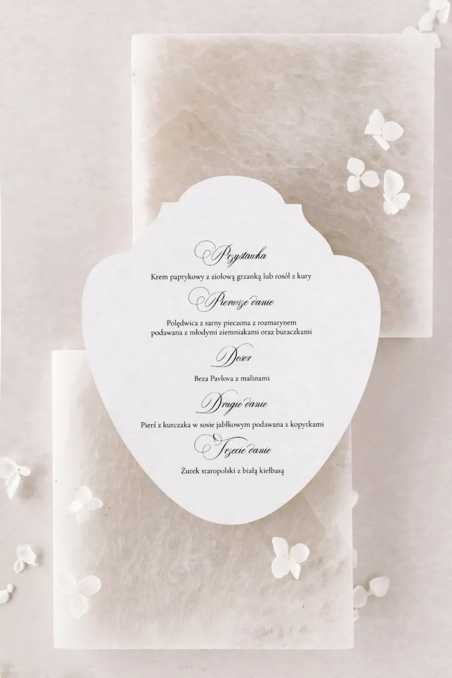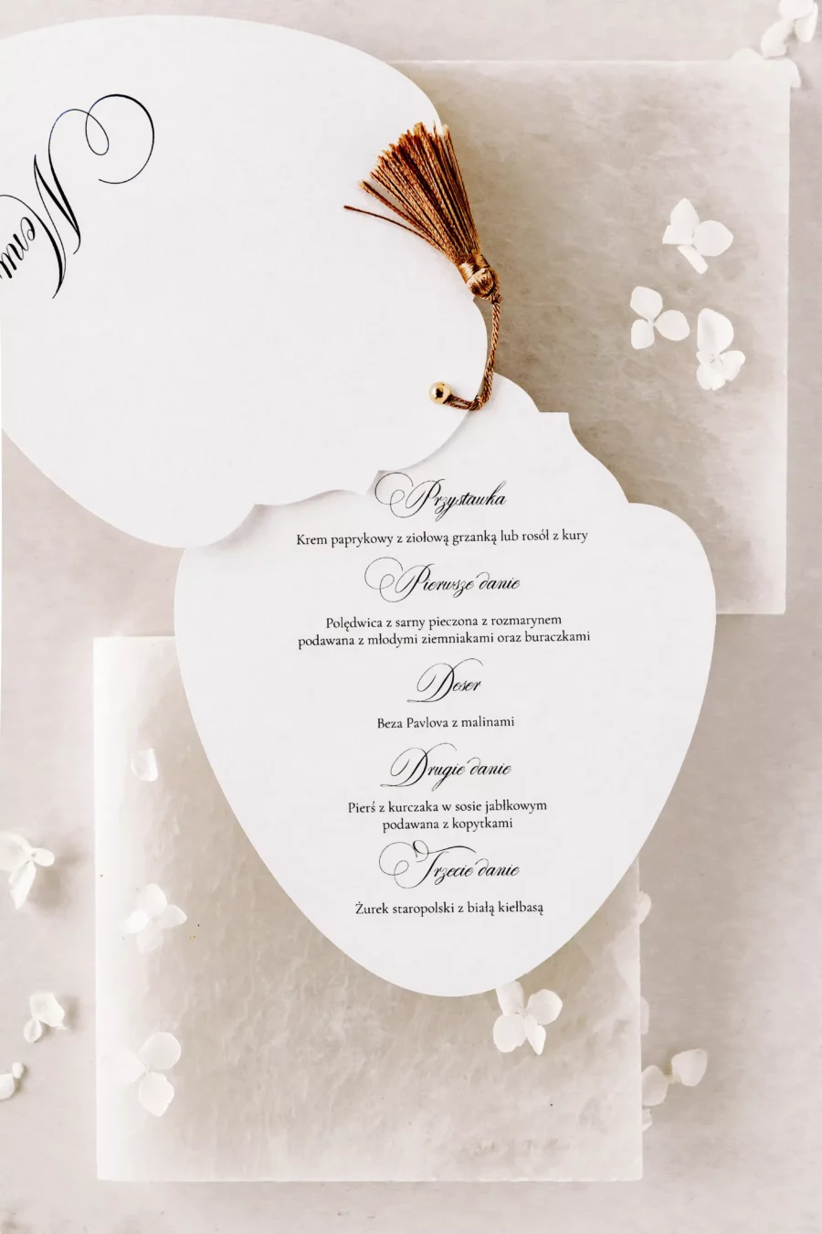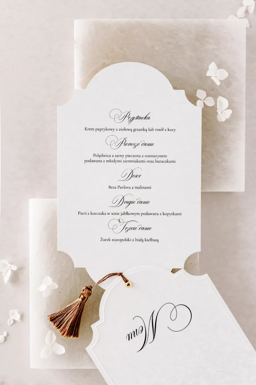 Na zdjęciach prócz zaproszenia widoczne są trzy koperty z różnymi możliwościami druku, pierwszy przykładowy wariant z drukiem na froncie, drugi na klapce koperty, oraz z opcją kokardki.