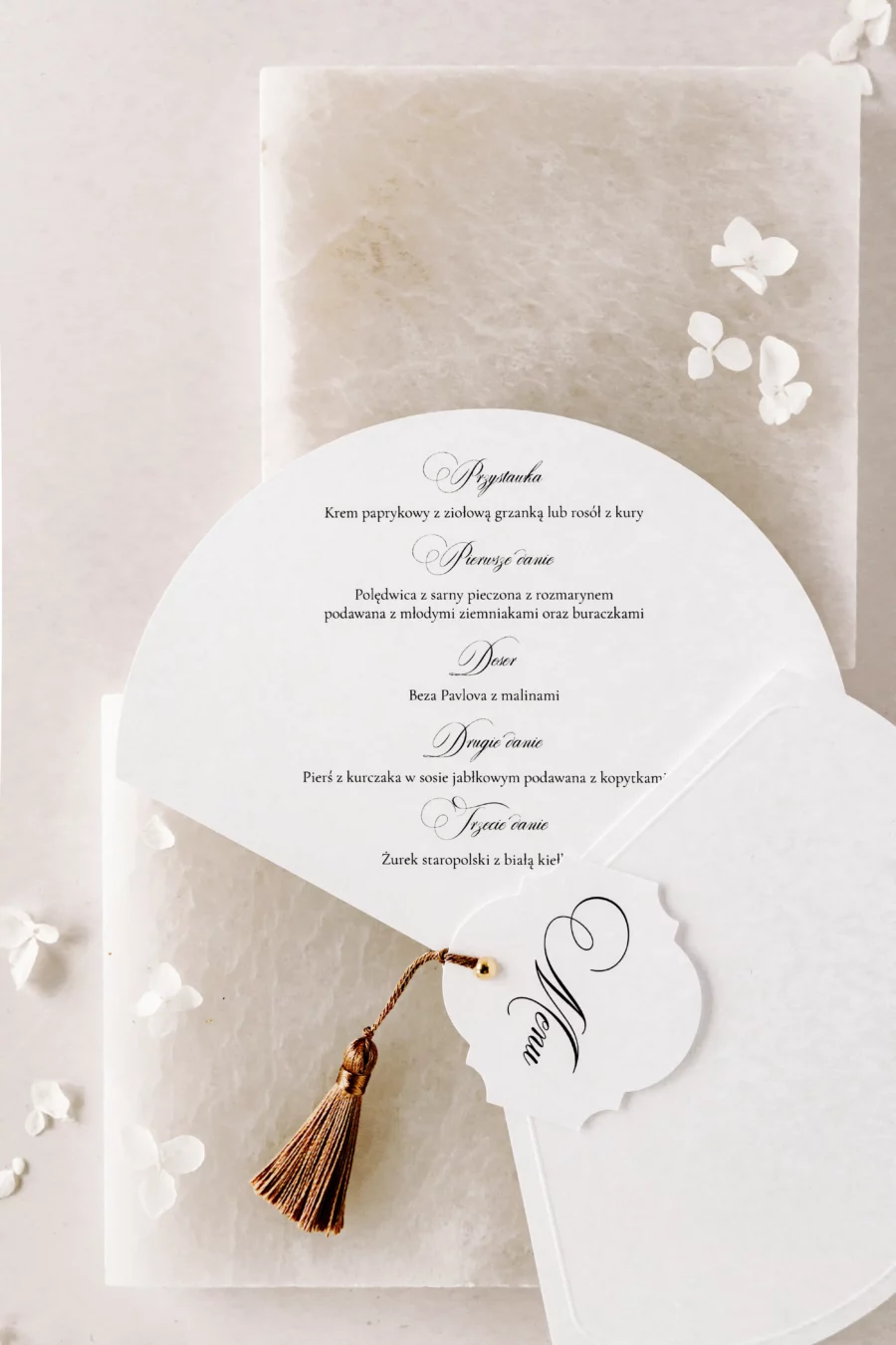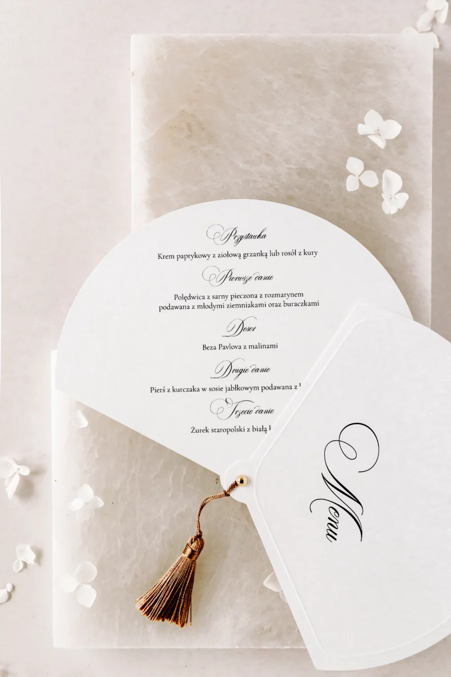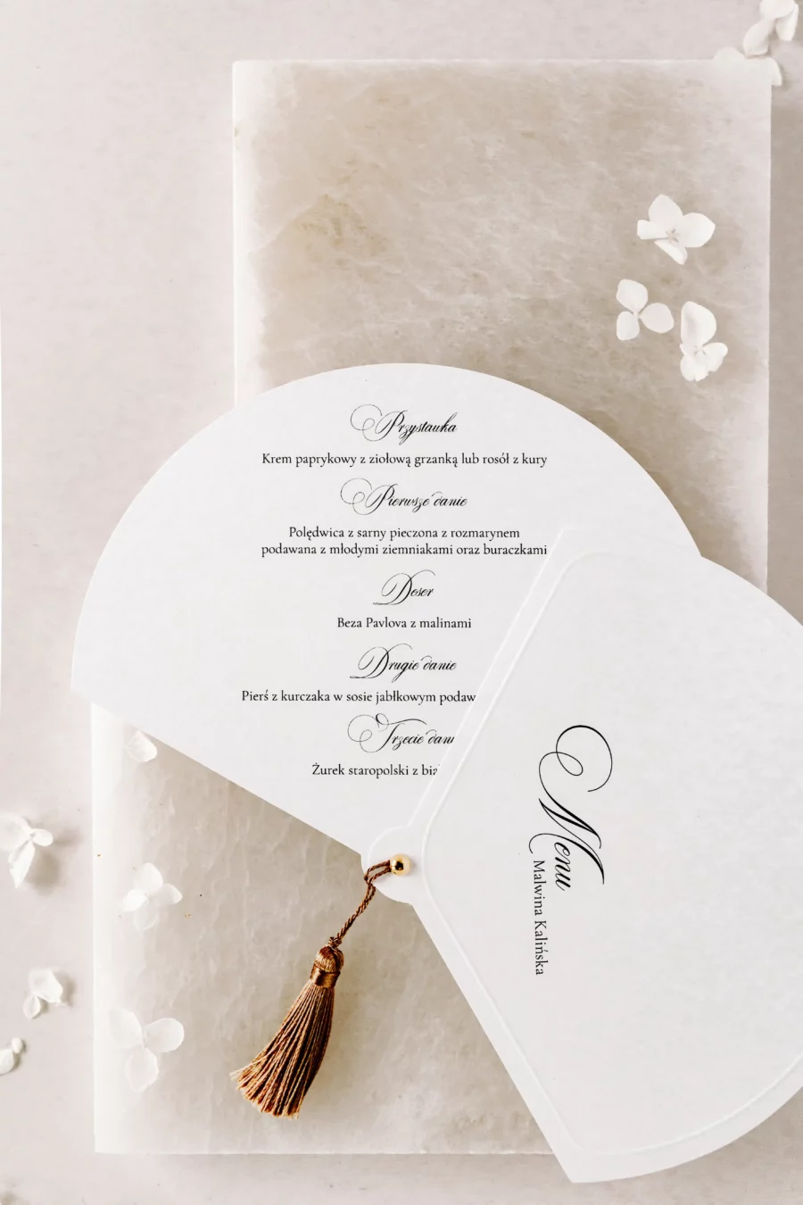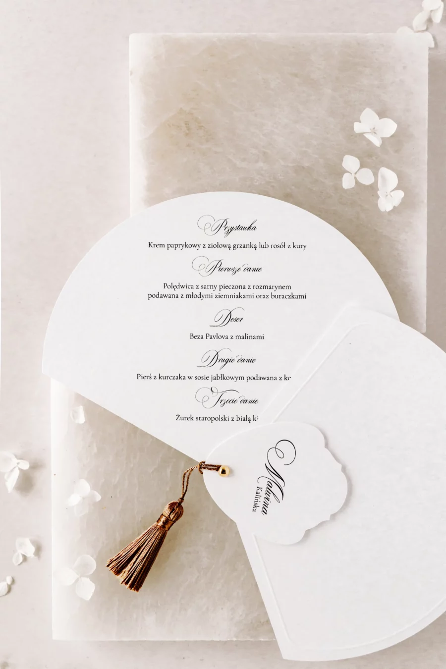 Na zdjęciach prócz zaproszenia widoczne są trzy koperty z różnymi możliwościami druku, pierwszy przykładowy wariant z drukiem na froncie, drugi na klapce koperty, oraz z opcją kokardki.