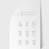 Plan stołów przygotowany na sztywnej tablicy w dowolnym kształcie w tym na przykład:
