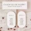 Ręcznie przygotowywany plan stołów drukowany na papierze fakturowanym o gramaturze 250 g/m2, przeznaczony do rozwieszenia lub przyklejenia na lustrze, w ramie, na okiennym skrzydle czy innym miejscu według fantazji klienta :)