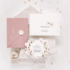 Na zdjęciach prócz zaproszenia widoczne są dwie koperty z różnymi możliwościami druku, pierwszy przykładowy wariant z drukiem na froncie, drugi na klapce koperty.
