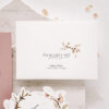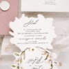 Dwu- lub trzykartowe zaproszenie drukowane na fakturowanym papierze o gramaturze 250 g/m2. Rozsuwane i połączone złotym lub srebrnym elementem. Karty wykończone motywem roślinnym. Całość w autorskim niepowtarzalnym i oryginalnym kształcie.