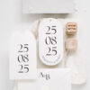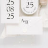 Na zdjęciach prócz zaproszenia widoczne są dwie koperty z różnymi możliwościami druku, pierwszy przykładowy wariant z drukiem na froncie, drugi na klapce koperty.