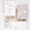 Ręcznie przygotowywane zaproszenie składające się z jednej lub dwóch kart o gramaturze 250 g/m2 wykończonych w kolorze złota lub srebra
